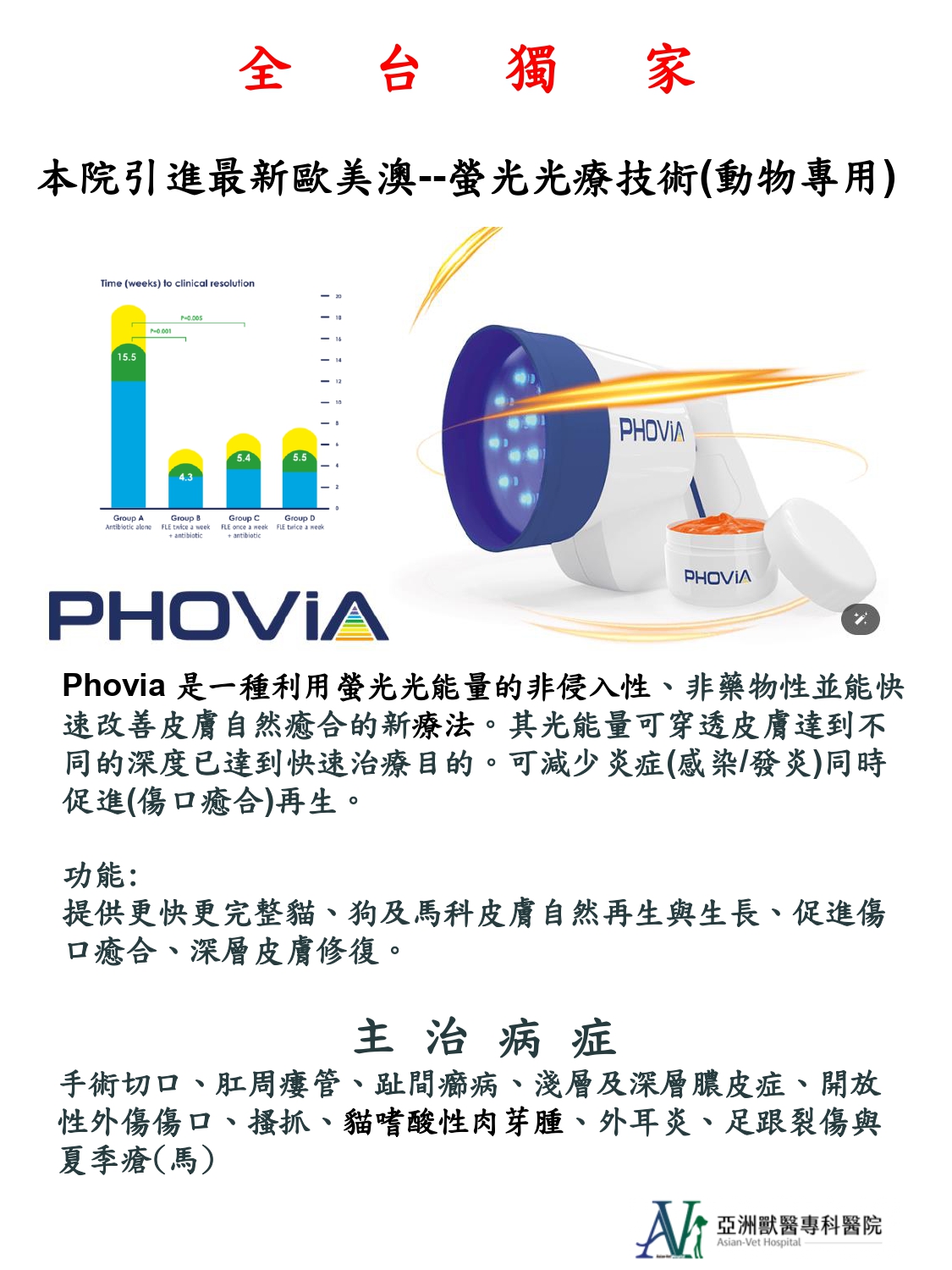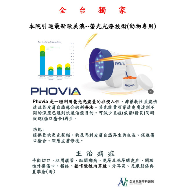 全台獨家|本院引進最新歐美澳--螢光光療技術(動物專用)