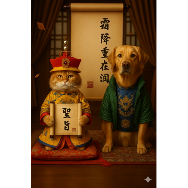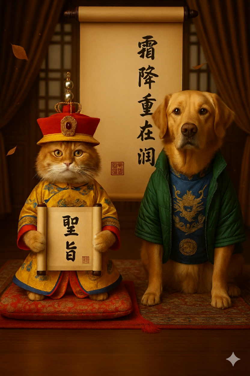 欽此:霜降節氣已至,氣溫驟降,天地間寒氣凝聚。朕(主子們)的龍體即將啟動「年度節能休眠」模式——氣血內收、代謝減緩,肺部與皮毛部門將迎來最嚴峻的KPI考驗。