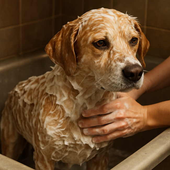 正確的狗狗皮膚病藥浴技巧,比吃藥還重要。請依照醫師建議頻率(通常每週 2-3 次)進行: